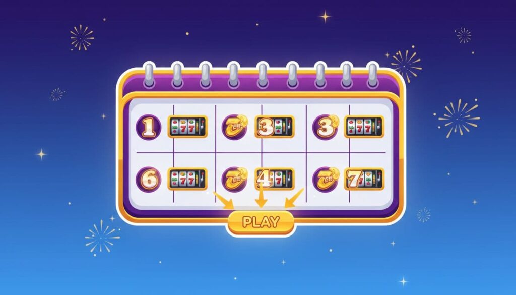 Free spin distribuiti su un calendario, per visualizzare bene la logica “a tranche”, creata con AI.